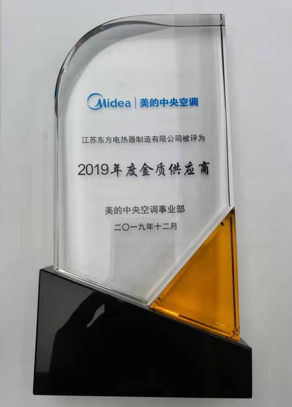 2020年喜報(bào):江蘇東方電熱器制造有限公司被評(píng)為美的公司2019年優(yōu)質(zhì)供應(yīng)商!